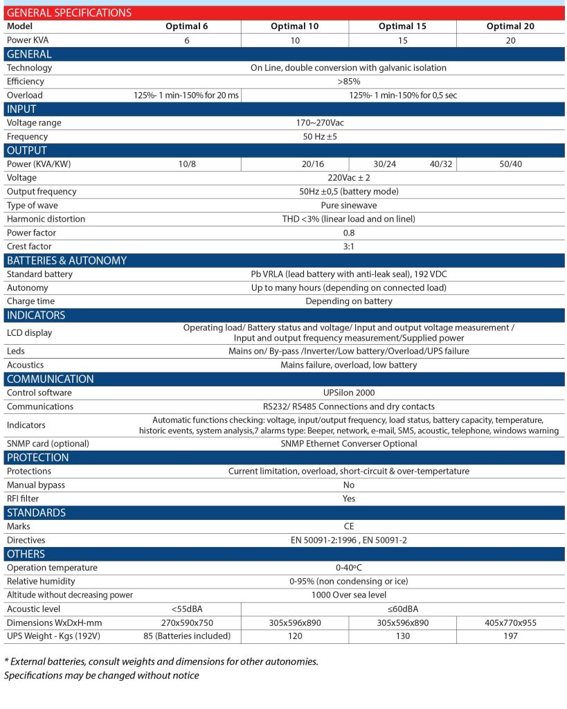 The Optimal series UPS guarantee total protection for powers ranging from 6kva to 20kva against any